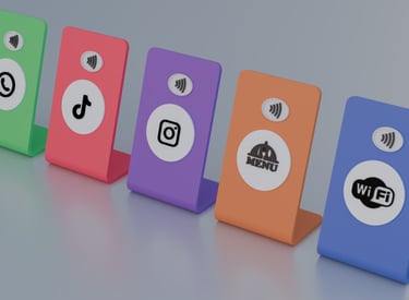 Stands QR y Tarjetas NFC que enlazan a tus clientes directamente con Google Reviews, redes sociales o menús digitales. Simplifica la interacción y multiplica tus opiniones positivas con un diseño profesional y exclusivo.
